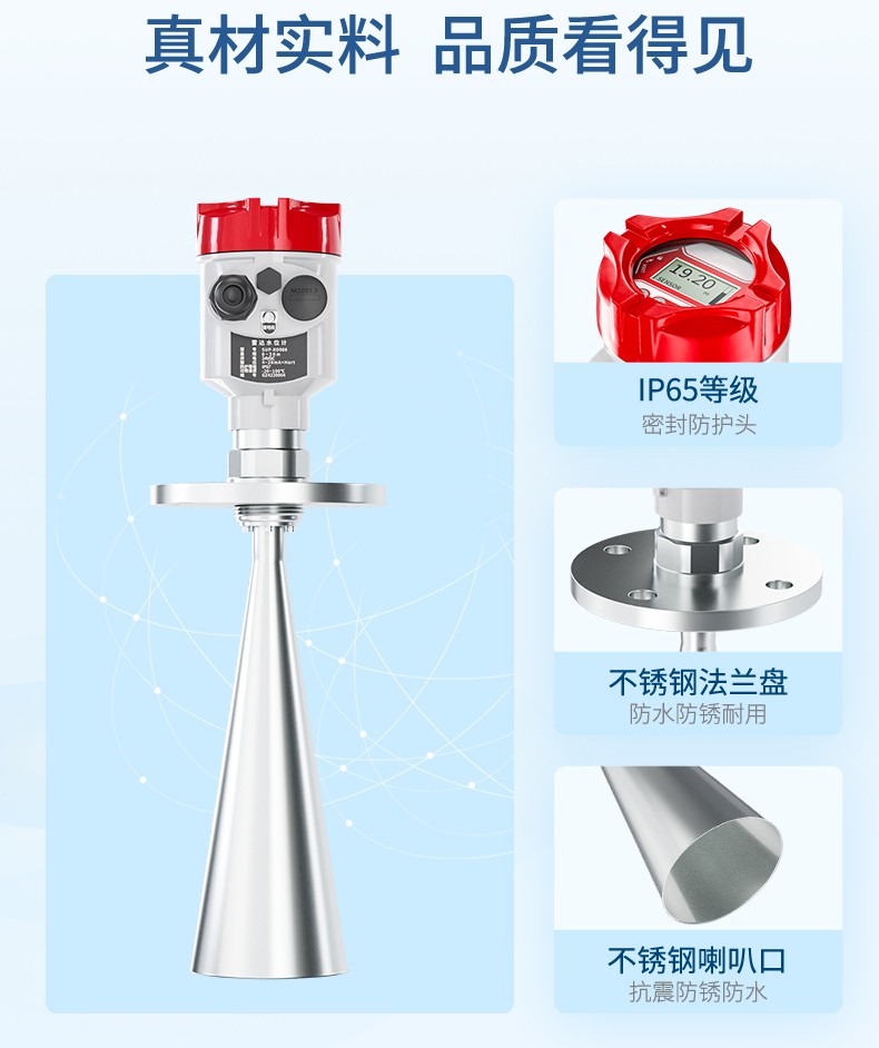 產(chǎn)品描述:雷達(dá)水位計(jì)天線發(fā)射極窄的微波脈沖,這個(gè)脈沖以光速在空間傳播, 遇到被測(cè)介質(zhì)表面,其部分能量被反射回來(lái),被同一天線接收。發(fā)射脈 沖與接收脈沖的時(shí)間間隔與天線到被測(cè)介質(zhì)表面的距離成正比。CN5