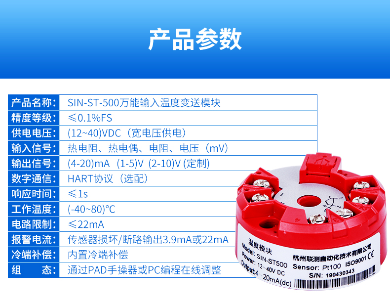 產(chǎn)品名稱(chēng):聯(lián)測(cè)_SIN-ST500_溫度變送模塊_熱電阻/熱電偶轉(zhuǎn)4-20mA輸出