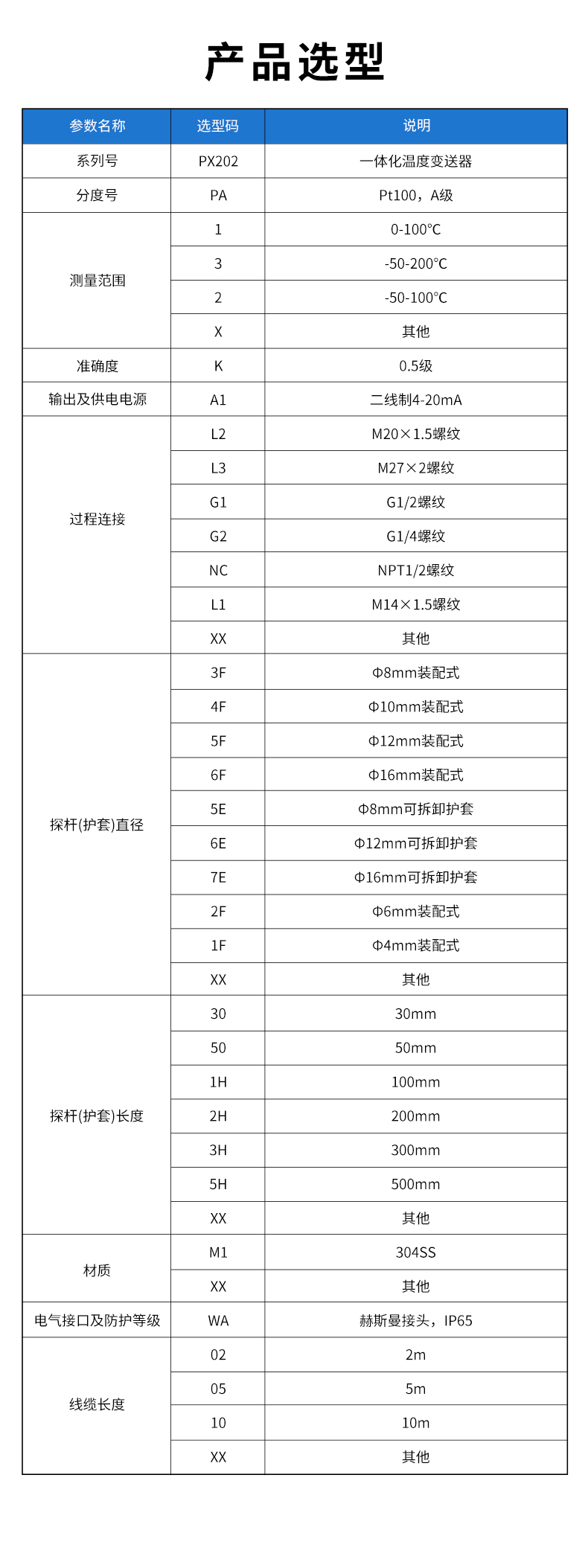 產品描述:智能溫度變送器,用于熱電阻(RTD)輸入,二線制( 4~ 20)mA 模擬輸出、RS485 輸出。內置最新的 ASSIC 單芯片 集成電路,采用高精度 24 位 ADC 轉換為數字信號,產品 具有測量準確、工作穩定、使用壽命長等特點。