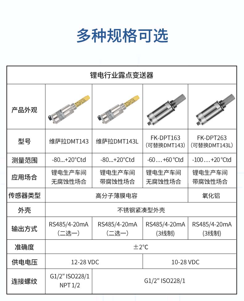 -40℃td,高分子電容傳感器對比于其他類型的傳感器在該區間無論是精準度、響應速度還是長期穩定性均為最優,并且性價比最高; 革新的自校準電路設計,能自動補償溫度、污染、老化引起的電路漂移,提供長期可靠的高精度測量; 創新的溫度補償算法及出廠前多點溫度的補償校驗,大大改善了傳感器的溫度漂移,保證了寬溫度范圍內的高精度測量咨詢熱線:400-185-1718">