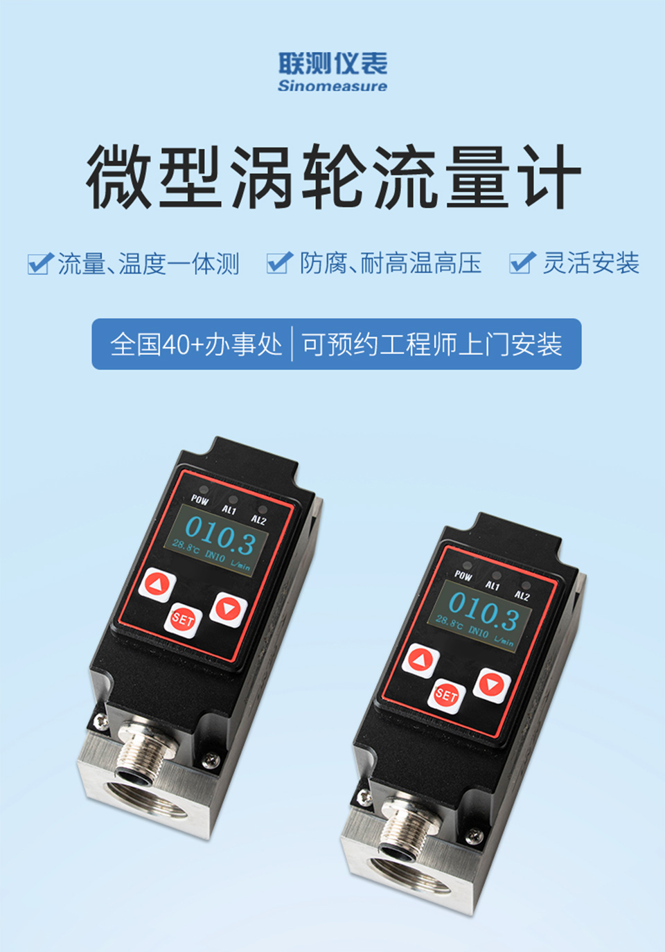 產(chǎn)品描述:微型渦輪流量計(jì)結(jié)構(gòu)簡單、精確度高、安裝維修使用方便,可對(duì)管道中的液體流量及溫度情況進(jìn)行實(shí)時(shí)監(jiān)控,支持流量和溫度(4~20)mA 信號(hào)或 485 通信、報(bào)警開關(guān)輸出,并采用 OLED 實(shí)時(shí)顯示流體流量及溫度,實(shí)現(xiàn)管道當(dāng)中流量溫度一體式的監(jiān)控功能。本產(chǎn)品廣泛應(yīng)用于石油化工、電力、治金、鋼廠、造紙、食品加工、水處理、電池廠等行業(yè)。