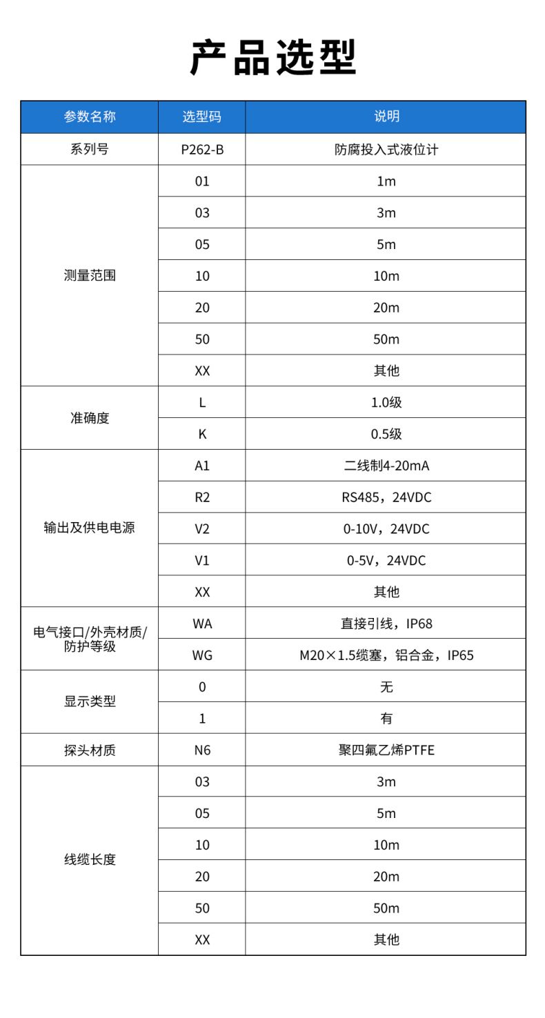 產(chǎn)品名稱:聯(lián)測_P262/P262-B防腐投入式液位計/水位計_陶瓷芯體_